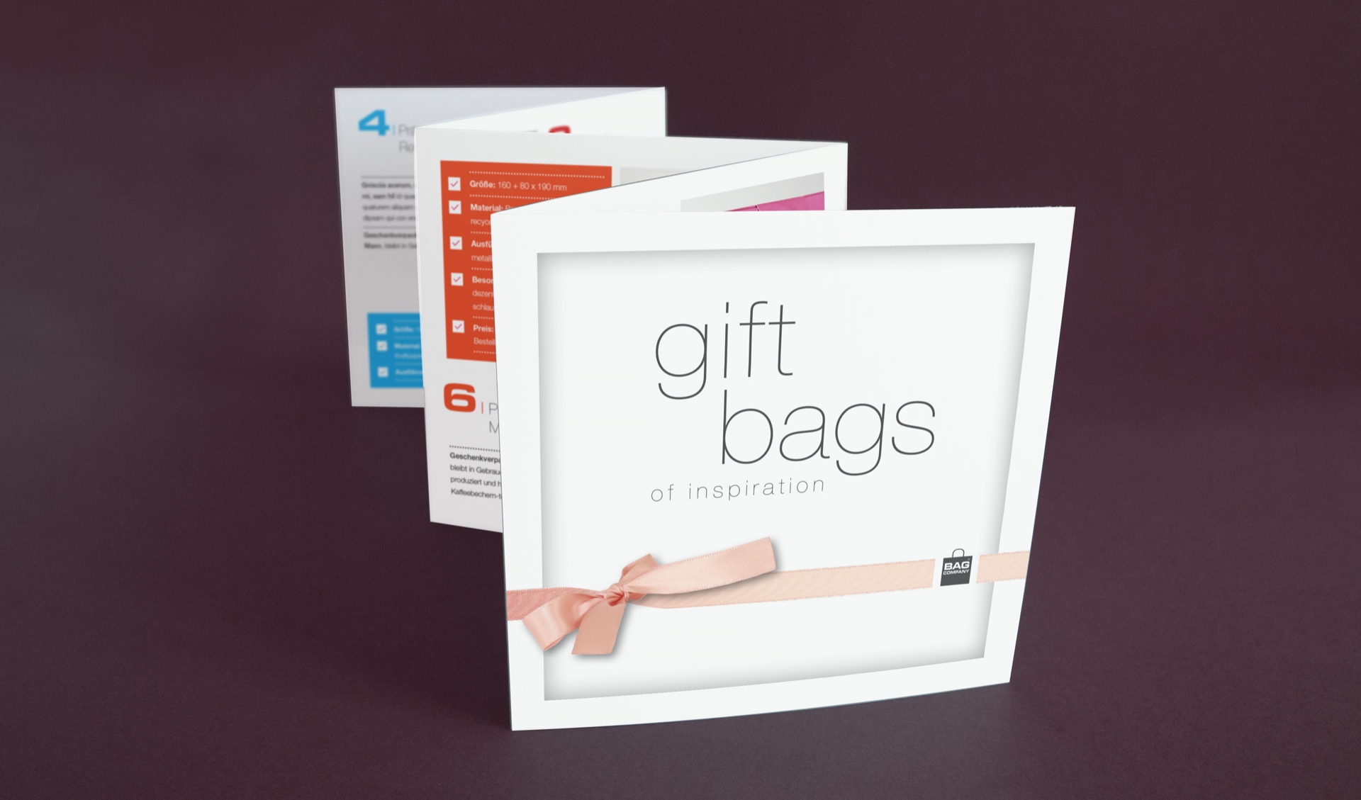 Unsere aktuellen „giftbags of inspiration“, sechs unterschiedliche und aussergewöhnlich attraktive Geschenkverpackungen zum Blitzverlieben, können Sie gerne bei uns anfordern unter 0 80 51 / 90 14 20 oder contact@bag-company.com