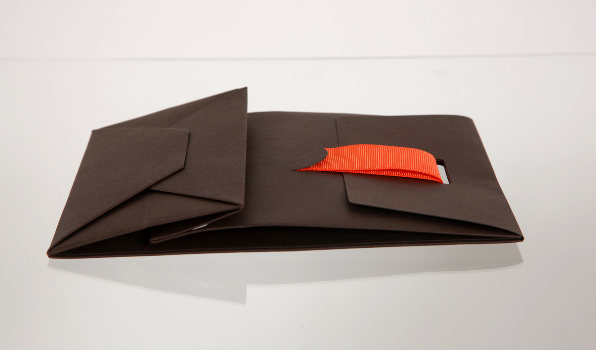 - Ausführung: Schwarzer glänzender UV-Lack und weiße Heißfolienprägung mit bedrucktem Satinband als Verschluss und Schmetterlingsboden